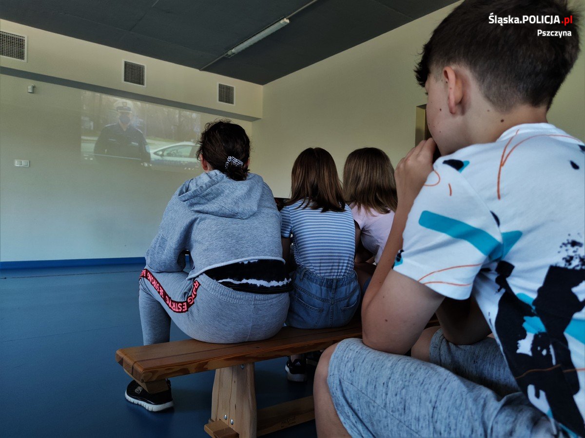 Prezentowane materiały okazały się bardzo pomocne. Nie dość, że szczegółowo prezentowały zasady właściwego poruszania się po drodze, to jeszcze były dzieciom doskonale znane, ponieważ spoty nagrywano na terenie powiatu pszczyńskiego. Dzięki temu w obrazowy sposób przedstawiono miejsca i sytuacje, które czasem budzą wiele wątpliwości. Uczniowie dowiedzieli się też, jak ważne jest noszenie odblasków oraz jakie obowiązki ma na drodze pieszy. Dodatkowo policjanci przypomnieli o obowiązkowych elementach, w jakie powinien być wyposażony rower, a także zachęcali do używania podczas jazdy kasku ochronnego. Mundurowi omówili też zasady bezpiecznej jazdy na hulajnogach, deskorolkach i rolkach.