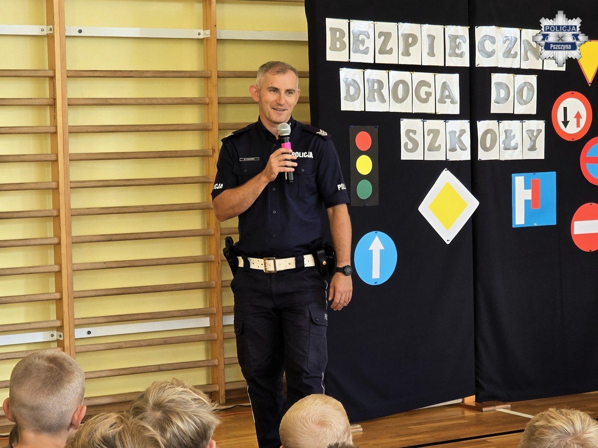 Policjanci z Pszczyny odwiedzili Szkołę Podstawową nr 1 w Goczałkowicach-Zdroju, gdzie w ramach akcji „Bezpieczna droga do szkoły” przypomnieli uczniom najważniejsze zasady bezpieczeństwa. Dzieci dowiedziały się m.in., jak prawidłowo przechodzić przez jezdnię, dlaczego warto nosić odblaski oraz jak bezpiecznie korzystać z roweru i hulajnogi.