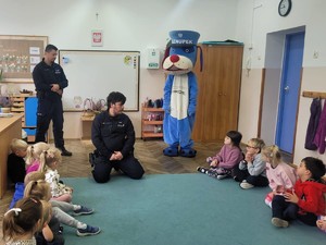 Dzielnicowi przypomnieli dzieciom, jak ważne jest przestrzeganie zasad ruchu drogowego, rozwaga podczas zabaw na świeżym powietrzu i unikanie kontaktu z nieznajomymi.