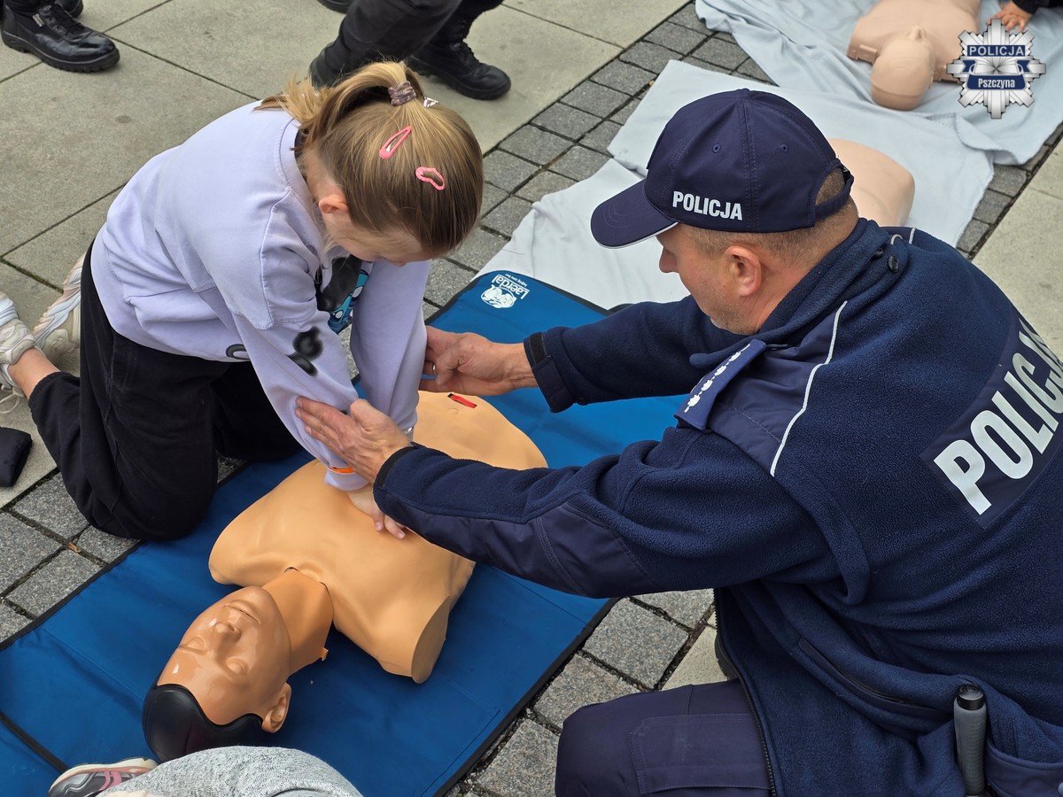 Na pszczyńskim rynku policjanci wspólnie z ratownikami zachęcali mieszkańców do nauki pierwszej pomocy i resuscytacji krążeniowo-oddechowej. W wydarzeniu wziął udział Komendant Powiatowy Policji insp. Arkadiusz Bloch, dając przykład, że reagowanie w sytuacji zagrożenia to obowiązek każdego z nas. Akcji towarzyszyła także zbiórka krwi w mobilnym punkcie krwiodawstwa.