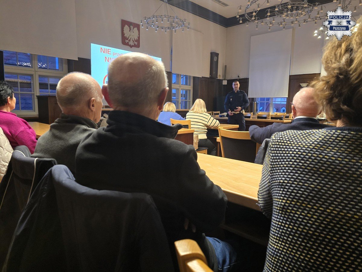 Seniorzy z Uniwersytetu Trzeciego Wieku wzięli udział wczoraj w profilaktycznym spotkaniu z Naczelnikiem WRD pszczyńskiej komendy. Podczas spotkania mundurowy omówił zasady bezpiecznego poruszania się pieszo, na rowerze i w samochodzie, ze szczególnym uwzględnieniem odblasków, kasków i pasów bezpieczeństwa. Spotkanie urozmaiciła rozmowa o praktycznych wskazówkach, jak chronić zdrowie i życie na drodze, także dzięki małym, codziennym nawykom.