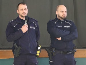 Policjanci aktywnie włączyli się w część teoretyczną zajęć, przekazując uczniom wiedzę dotyczącą właściwego zachowania w sytuacjach zagrożenia życia i zdrowia. Wyjaśnili, jak prawidłowo wezwać pomoc, na co zwrócić uwagę jako świadek zdarzenia oraz jak istotna jest szybka i spokojna reakcja. Odwołując się do doświadczeń z codziennej służby, podkreślili, że nawet podstawowe działania podjęte na czas mogą mieć kluczowe znaczenie.